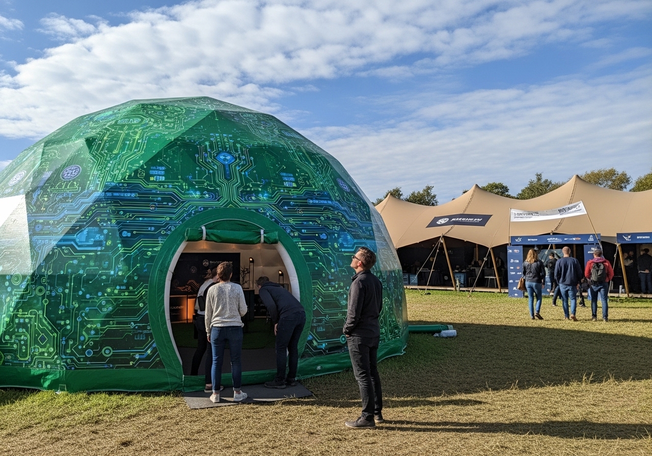 ✓ Now, Full-Surface Printed Domes wrap the visitor in a 360-degree brand world. This deep immersion creates a powerful psychological effect, leading to a significantly higher brand recall rate and reinforcing a perception of the brand as established, professional, and detail-oriented.